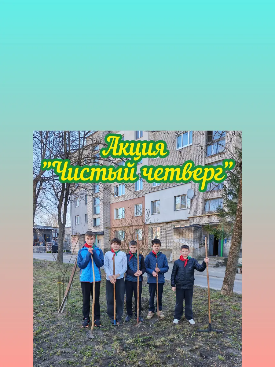 Мы все хотим, чтобы наша школа и пришкольная территория были чистыми и красивыми. Ведь это наш общий дом, и мы в ответе за то, как он выглядит. Именно поэтому пионеры нашей дружины решили взять инициативу в свои руки и запустили акцию "Чистый четверг"!