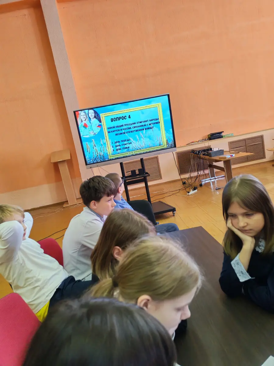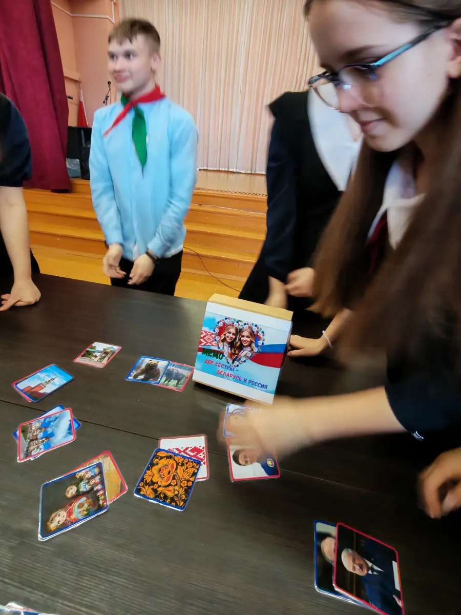 В честь этого события учащиеся 5А, 7А и 8 Б классов в рамках информационных часов приняли участие в увлекательной интерактивной встрече под названием "Две сестры - Беларусь и Россия". Ребята смогли не только узнать больше об истории этого знаменательного дня, но и окунуться в атмосферу игры. Они с азартом сыграли в настольную игру "Мемо. Две сестры - Беларусь и Россия", а также проверили свои знания в тематической интерактивной викторине, которые подготовила педагог-организатор Дик Виктория Олеговна.