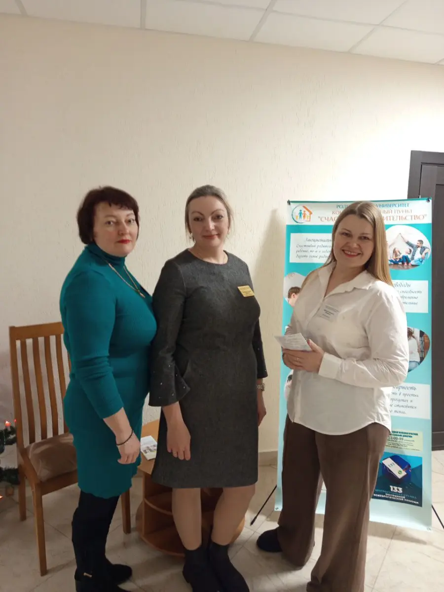Сегодня, 06 января 2026 года, наши педагоги: Потапенко В.Г., педагог-психолог, Жих Ю.П., педагог социальный и Королько Е.П., педагог социальный приняли участие в пилотном проекте «Консультационный пункт «Счастливое родительство». Пункт был расположен на территории ОАО «Борисовдрев», где каждый желающий мог получить памятки, буклеты по гармонизации детско-родительских отношений, особенностях возраста несовершеннолетних, профилактике конфликтных ситуаций, эмоционального выгорания законных представителей несовершеннолетних, формированию здорового образа жизни, и других.