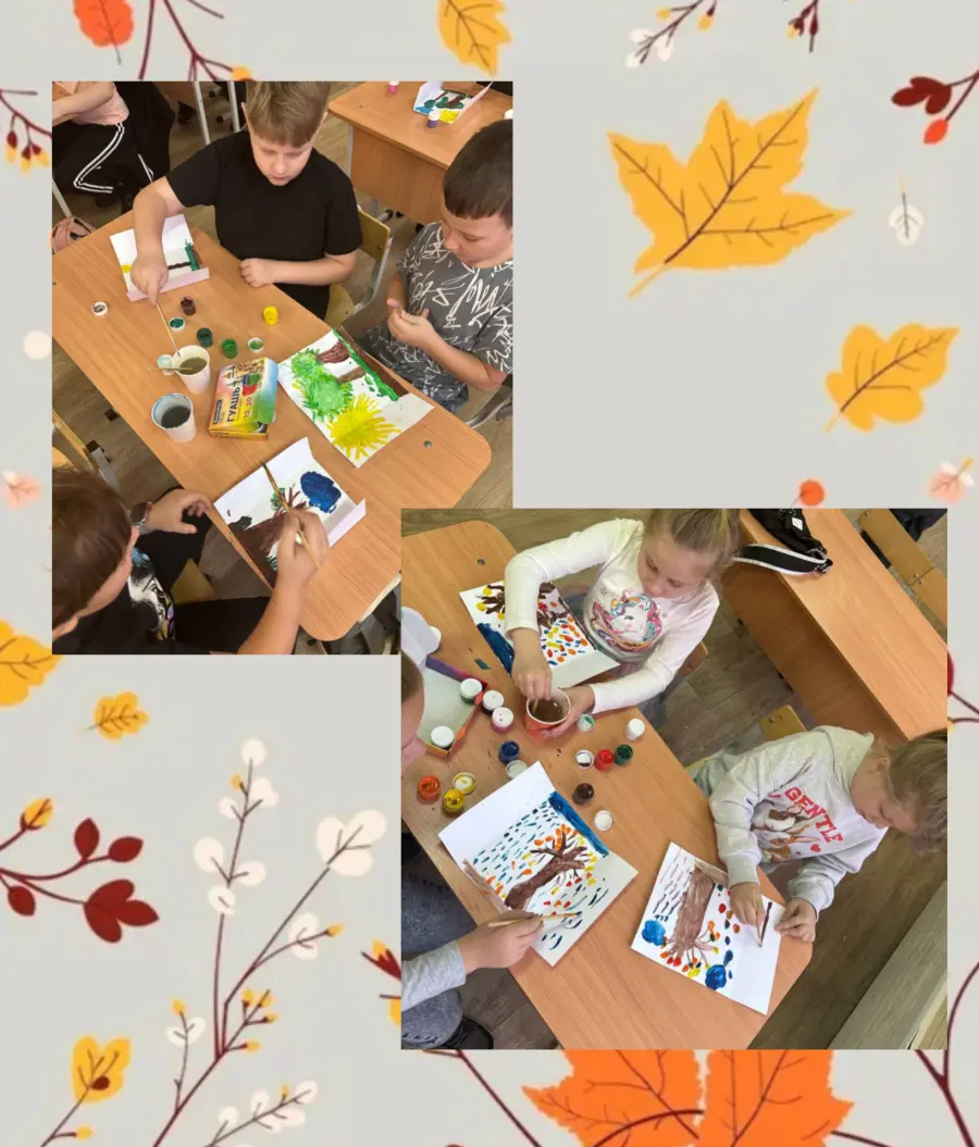 Сегодня ребята окунулись в творчество на мастер-классе "Осенний лес", где под руководством Ольги Михайловны Пиотух, педагога-организатора, учились передавать красоту осенних деревьев – липы, клена и дуба.