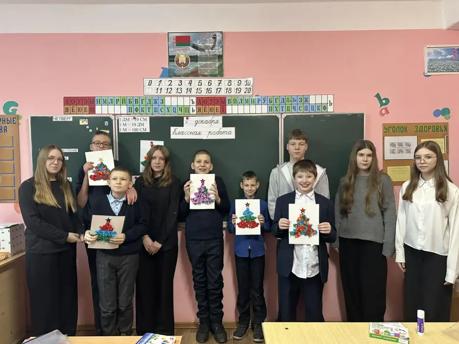 Приближаются новогодние праздники. Время, когда каждый из нас летает на крыльях творчества и фантазии. Хочется творить и мастерить. Наши ребята вместе с учащимися педагогических классов с радостью изготовили открытки "В лесу родилась ёлочка". Каждая работа - это ожидание волшебства и чудес. Ребята поделились рассказами о том, какими игрушками украшают зелёную красавицу, о том, как встречают новый год и какую песню поют о зелёной гостье.