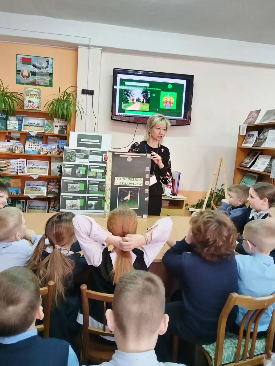 Вместе с заведующим школьной библиотекой Еленой Васильевной Скориной ребята вспомнили и назвали национальные парки и заповедники, которые находятся на территории нашей страны, а затем совершили заочную экскурсию по Борисовскому району. Девчонки и мальчишки «прошлись» тропинками родного края и «посетили» Березинский биосферный заповедник, биологический заказник местного значения по воспроизводству беловежских зубров, ландшафтный заказник «Черневичский», святые источники Борисовщины, Старо-Борисовский лес, усадебно-парковый ансамбль Слизней в д. Мстиж. Посредством электронной презентации дети увидели также геологические памятники природы республиканского значения «Валун Князь-Камень» и «Валуны Быки». Познавательно-экологический час наглядно показал школьникам, что в Борисовском районе есть множество удивительных мест. Чтобы о них узнать, нужно читать книги, смотреть видеофильмы и посещать эти места вместе со своими родителями.