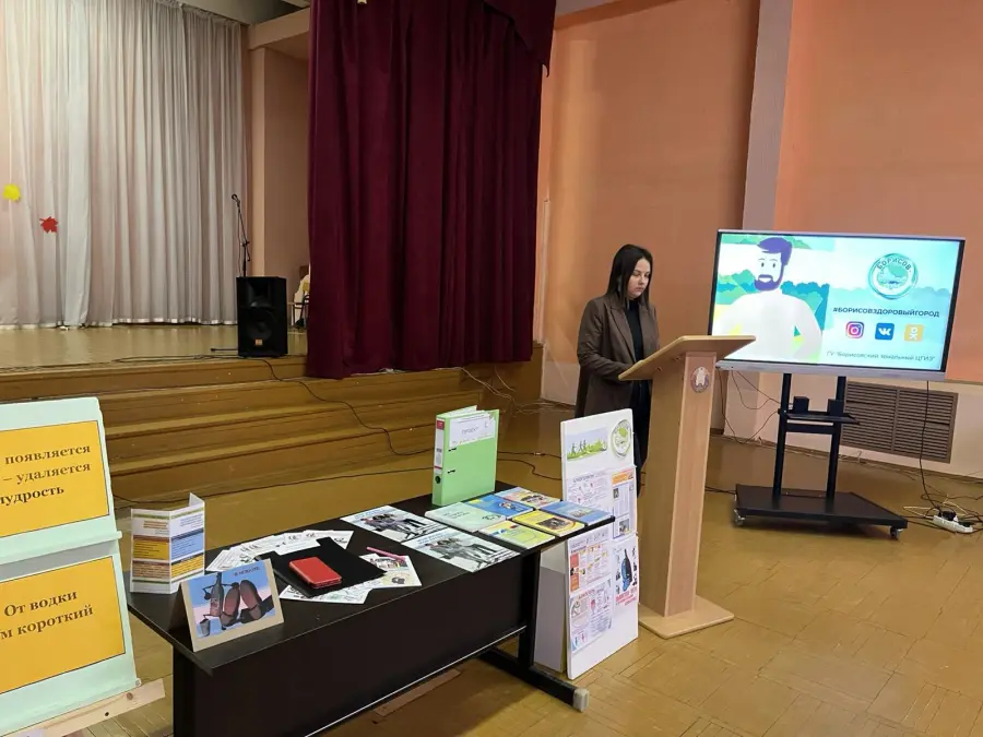 Совместный проект нашей школы и Борисовского зонального центра гигиены и эпидемиологии «По дороге со здоровьем» продолжает свою работу. 7 октября в актовом зале нашего учреждения образования собрались учащиеся 9 «Б» и 9 «В» классов, заведующий школьной библиотекой Елена Скорина и врач-гигиенист (заведующий) отделом общественного здоровья и социально-гигиенического мониторинга Юлия Поташева, чтобы рассмотреть проблему пьянства и алкоголизма в современном мире.