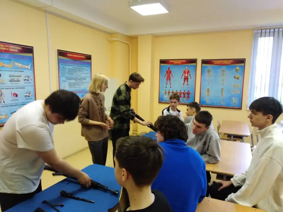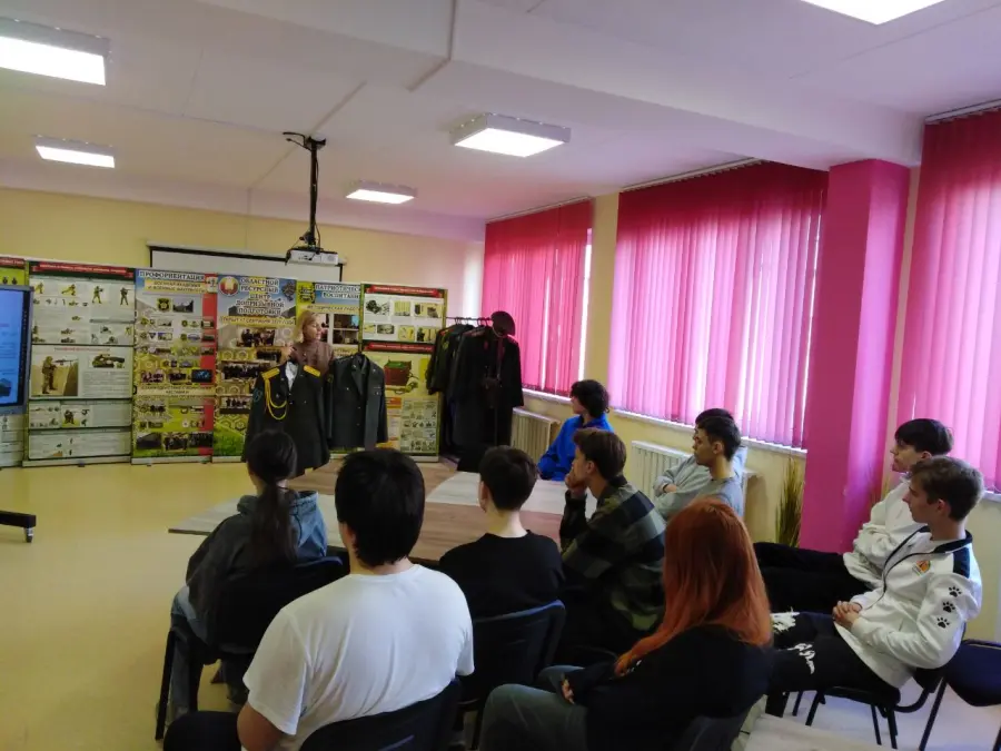 В шестой школьный день, 18. 04.2026 года, учащиеся 9-10 классов нашего учреждения образования посетили областной ресурсный центр допризывной подготовки Государственного учреждения образования "Средняя школа 25 г.Борисова". В ходе встречи спикер данной встречи, Журавель Татьяна Николаевна, познакомила ребят с военными факультетами Республики Беларусь, также помогла подготовить наших ребят для районного участия в республиканской игре "Орлёнок" в неполной разборке и сборке автомата Калашникова.
