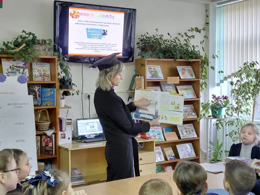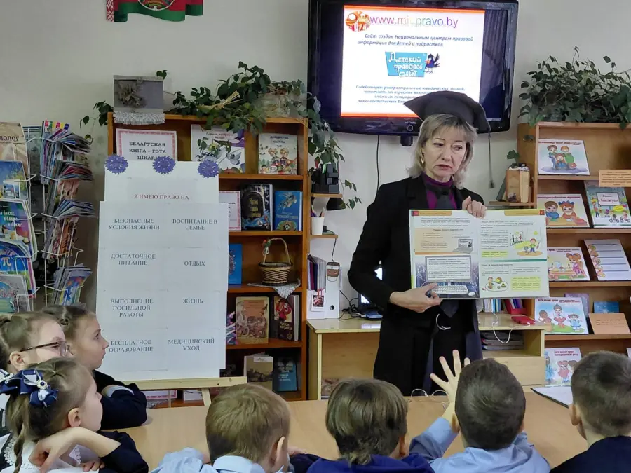 20 ноября школьную библиотеку посетили учащиеся 3 «В» класса вместе с классным руководителем Обросковой Виолеттой Анатольевной и приняли участие в часе правовой информации «Права свои знай – обязанности не забывай». Мероприятие было приурочено ко Всемирному дню защиты прав ребёнка. Заведующий школьной библиотекой Елена Васильевна Скорина познакомила ребят с их правами и обязанностями, с международными правовыми актами по правам ребенка. Используя электронную презентацию «Права человека – твои права» и материалы книжно-иллюстративной выставки «Право быть ребёнком», она рассказала ребятам о детском правовом сайте, который содействует распространению юридических знаний, даёт ответы на «взрослые» вопросы и советы, как поступить в той или иной сложной жизненной ситуации.