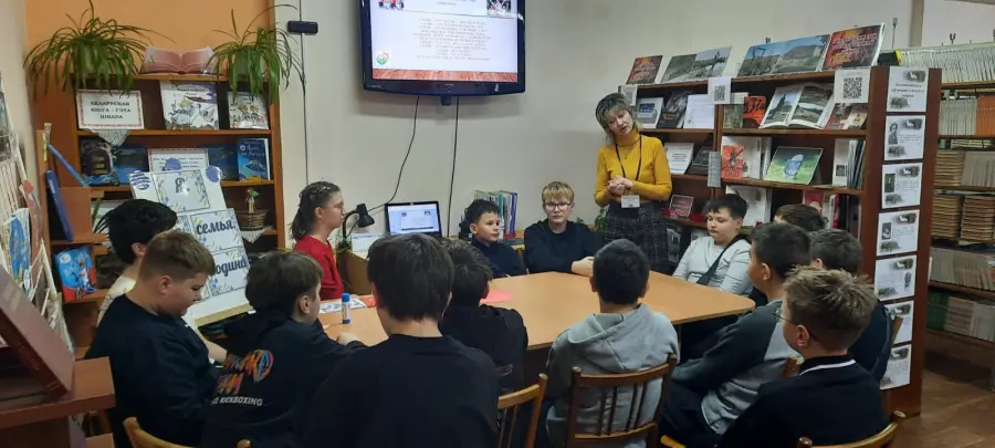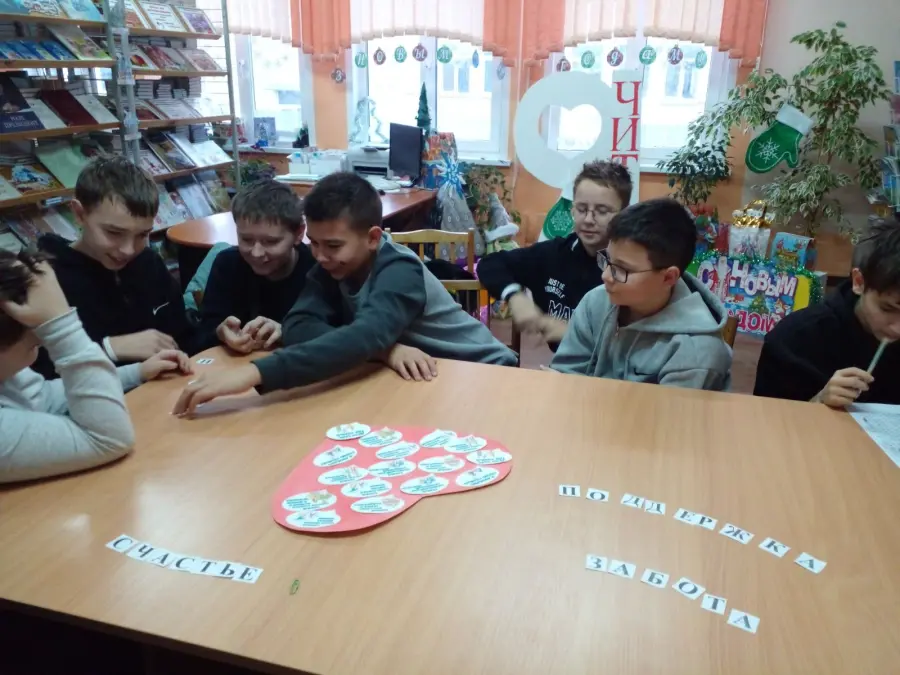 20 декабря в рамках шестого школьного дня в школьной библиотеке прошло мероприятие, посвященное семейным ценностям. Вместе с заведующим библиотекой Е.В. Скориной семиклассники вспомнили семейные ценности, рассказали о традициях своих семей, познакомились с государственными мерами поддержки семьи. Далее ребята составили генеалогическое древо своей семьи, тематические пословицы и ответили на вопросы викторины "Устами младенца". В завершение мероприятия дети дружно оформили плакат в форме сердца, на который наклеили речевые облака с высказываниями о семье.
